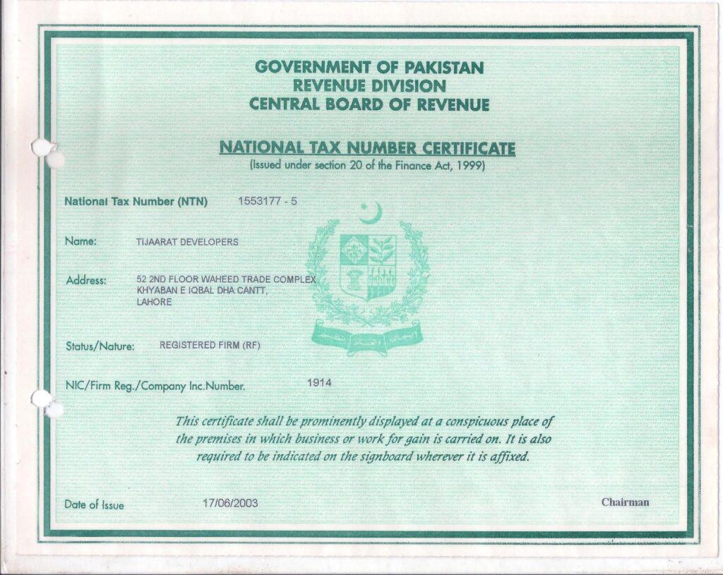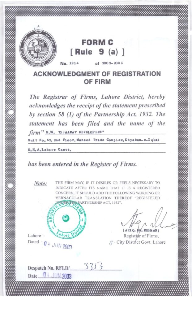 PEC Category CA license, registered with DHA, CWO, NLC, ISI, MES, Fauji Foundation, and CPEC Authority.